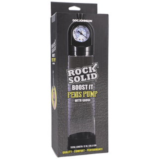 Prepare yourself for larger, thicker erections with Rock Solid's Boost It Penis Pump. This pump's clear vacuum cylinder allows you to track your growth with each pull of the lever. Its silicone entry sleeve keeps the pressure in, and its easy-release button gives you the ability to move on to...