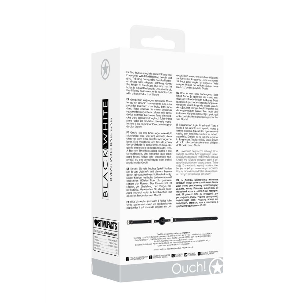 Hou je van een ondeugend spelletje? Snoer je geliefde de mond metdeze opvallende breath ball gag. Deze gag heeft kwaliteitsleren riempjes met elegante stiksels langs de lengte van de riempjes. Het riempje heeft 10 gaten om de lengte aan te passen. Eén maat voor iedereen. Gebruik dit speeltje op zichzelf of in combinatie met andere producten van Ouch!