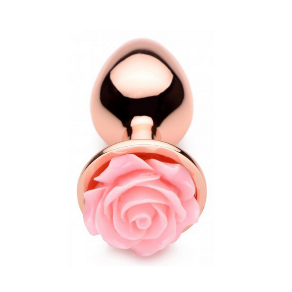 Enjoy this gorgeous rose-gold anal plug topped with a delicate, pink flower! Treat your booty like a shrine and adorn it with the most beautiful plug for your own delicate, pink flower. The nickel-free aluminium has a comfortable weight that pulls gently down against your backdoor. Play with temperature and sensations by heating or cooling the plug in hot or cold water before insertion. The tapered end and smooth metal make insertion easy and comfortable. Use any type of lubricant with this plug and enjoy both the look and feel of this beautiful plug! After use, simply wash with warm water and antibacterial soap and then dry with a soft cloth. Measurements: Overall length: 3 inches, Insertable length: 2.4 inches, Diameter at widest point 1.1 inches Materials: Aluminum alloy, ABS plastic Color: Pink, rose gold Key Features: Smooth Tapered: The tapered end makes insertion easy while the smooth, metal easily slips inside. Body-Safe: The aluminum is nickel-free and body-safe and can be used with any type of lubricant. Temperature Play: The metal can be warmed or cooled by placing in hot or cold water to play with temperatures.