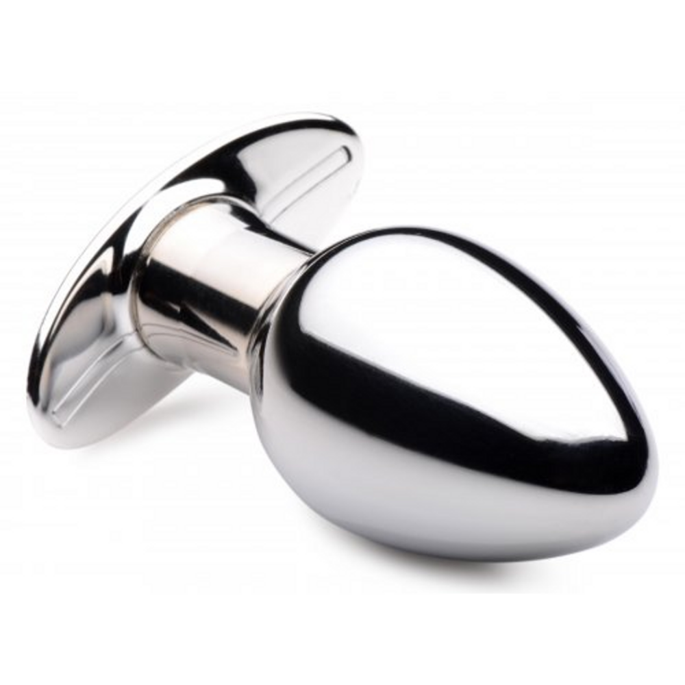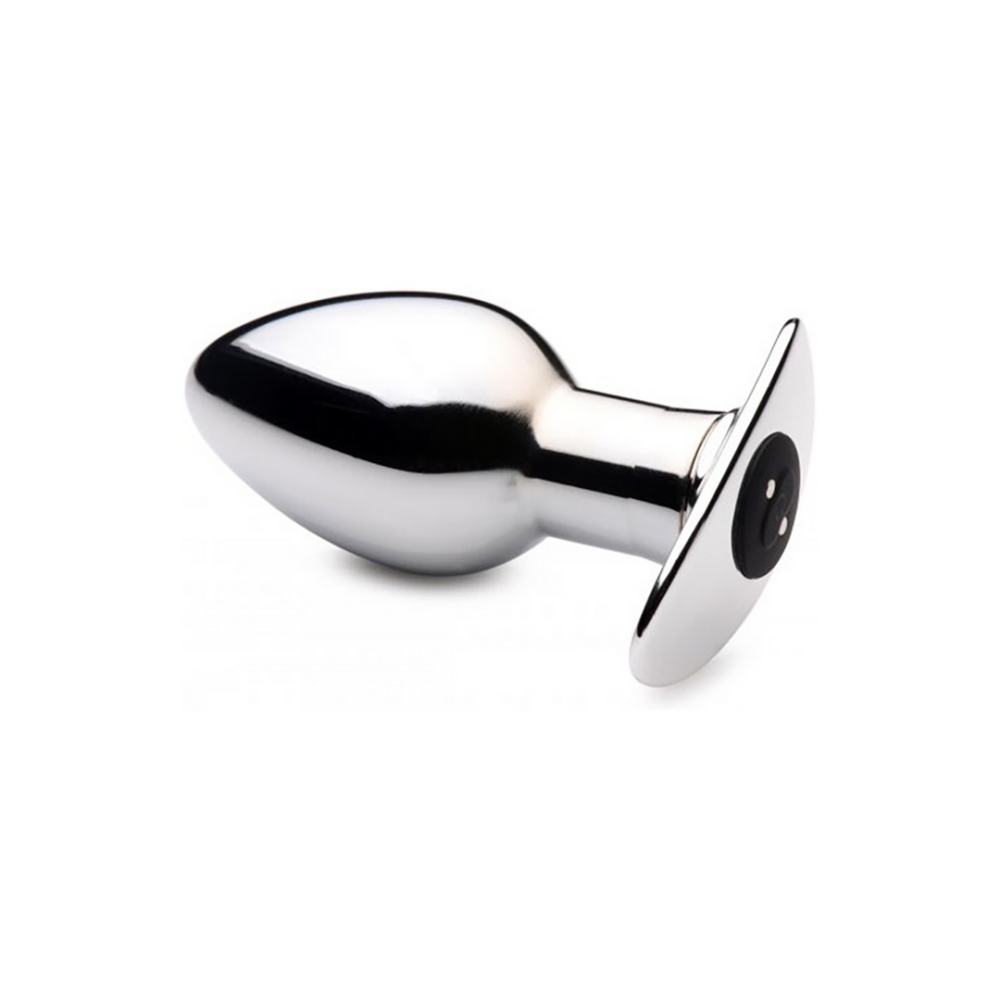 This smooth, metal butt plug is easy to use and delicious to experience! Enjoy easy insertion with the tapered end. Take pleasure in the non-porous, nickel-free metal as it slides inside. The heavy, weighted metal is compatible with all lubricant types and IP7X waterproofed. Enjoy the cool metal or warm it up in warm water before inserting. With 3 speeds and 4 patterns of vibration to choose from, use the remote control to wirelessly switch between options until you find your perfect setting! Use solo or hand it to partner the remote control is functional up to 20 feet (6 meters) away! After use, simply wash the toy in warm water and soap. Recharge using the USB charging cable. Replace the remote control battery when needed with a CR2032 battery. Do not expose toy to extreme heat or cold. Do not boil or freeze the toy prior to use extreme temperatures can cause rectal damage. Measurements: Overall length: 4 inches, Insertable length: 3.75 inches, Widest insertable diameter: 1.75 inches Materials: Aluminum alloy, ABS plastic, silicone Color: Silver Note: Signal reaches 20ft, Requires 1 x CR2032 battery (included) Key Features: Powerful Vibration: Choose between 3 speeds and 4 patterns of vibration. Tapered Metal Bulb: The smooth metal is nickel-free and non-porous making it perfect for backdoor play, compatible with all lubricants, and easy to clean. The tapered end makes insertion easy. Temperature Play: The plug can be heated or cooled by placing it in warm or cold water when exploring temperature and sensation! Do not use extreme temperatures, do not place the toy in the freezer, do not place the toy in boiling water this can result in serious injury to the delicate rectal tissue. Remote Control: Includes a remote control for hands-free fun you can enjoy alone or with a partner. Signal reaches 20ft and the remote requires 1 CR2032 battery, included. Rechargeable Waterproof: Easily rechargeable with a USB cable. The plug is waterproof using IP7X waterproofing.