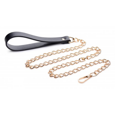 Leash je sub in stijl met deze Black and Gold chain leash! De handlus van zwart PU-leer past bij de oogverblindende gouden metalen hardware om je een bondage-accessoire te bieden waarmee je je sub in stijl kunt laten zien.